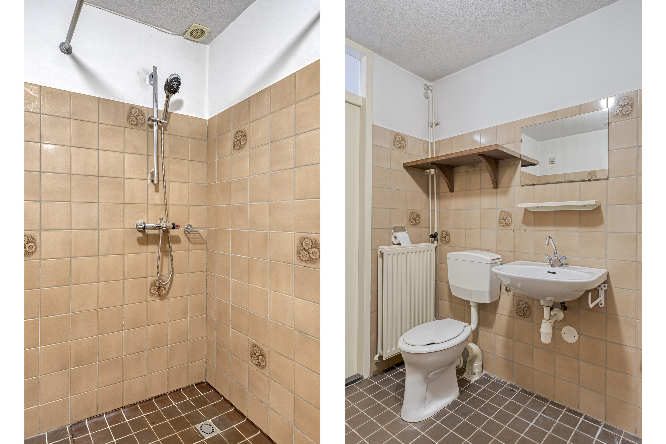 De badkamer (1982) is voorzien van een douche, wastafel en toilet. Daarnaast bevindt zich op deze verdieping een vaste kast, ideaal voor extra bergruimte.