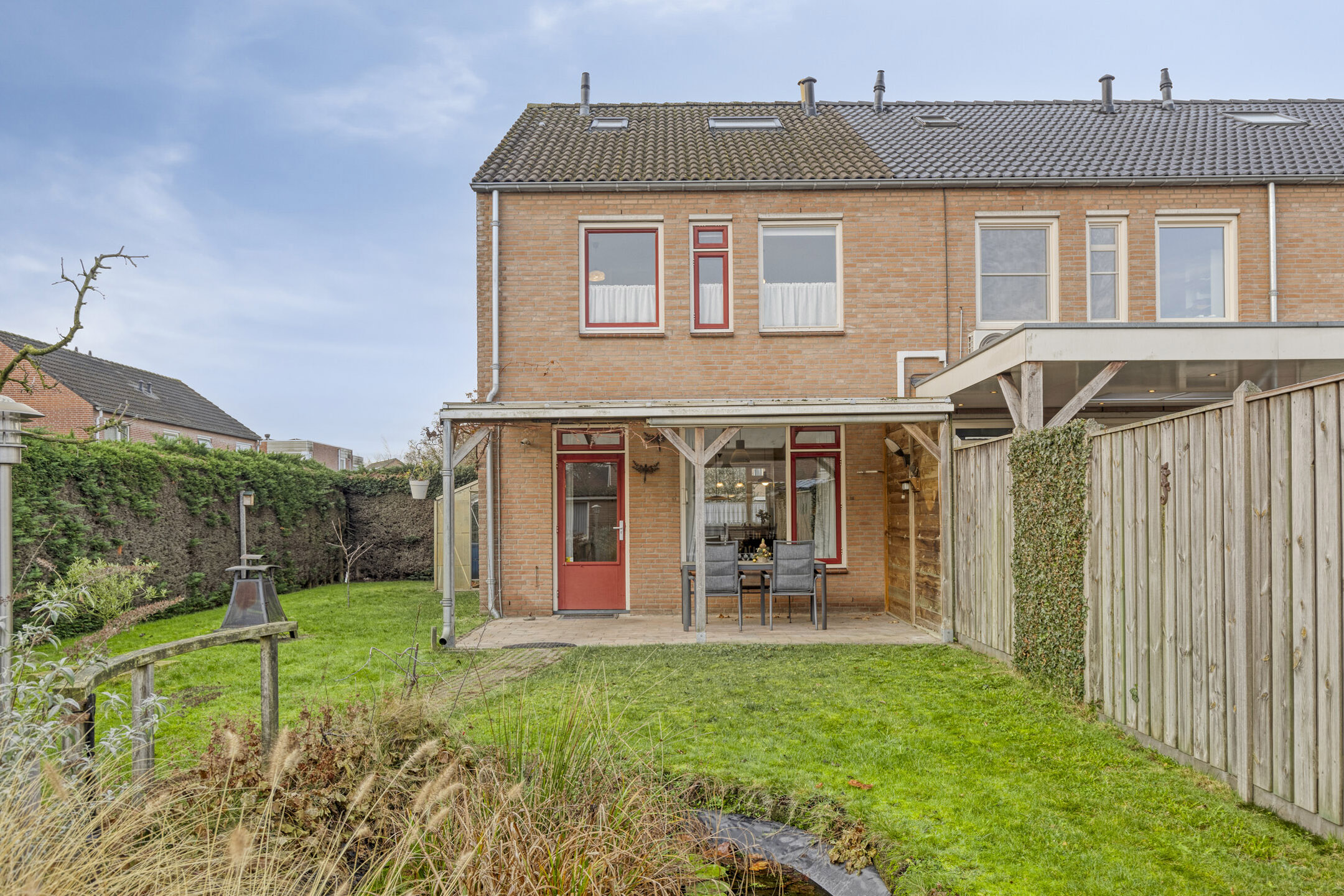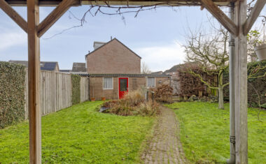 De woning beschikt over een verzorgde tuin met een overkapping, waardoor je het hele jaar door van het buitenleven kunt genieten. De woning is voorzien van een ruime garage en een extra parkeerplaats op eigen terrein. De ligging in een rustige woonstraat maakt dit een fijne plek om thuis te komen.