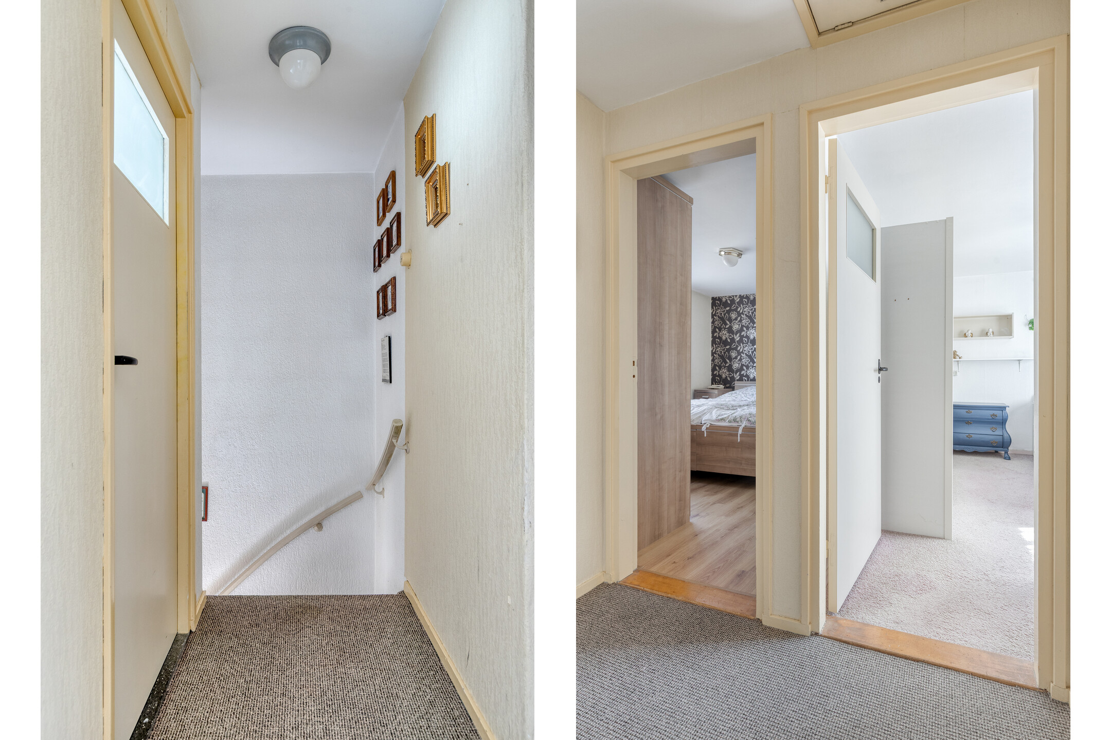 Op de eerste verdieping treft u een overloop met toegang tot vier slaapkamers. Deze kamers bieden diverse mogelijkheden, bijvoorbeeld als slaap-, werk- of hobbyruimte. Dankzij de indeling is de verdieping praktisch en functioneel in gebruik.