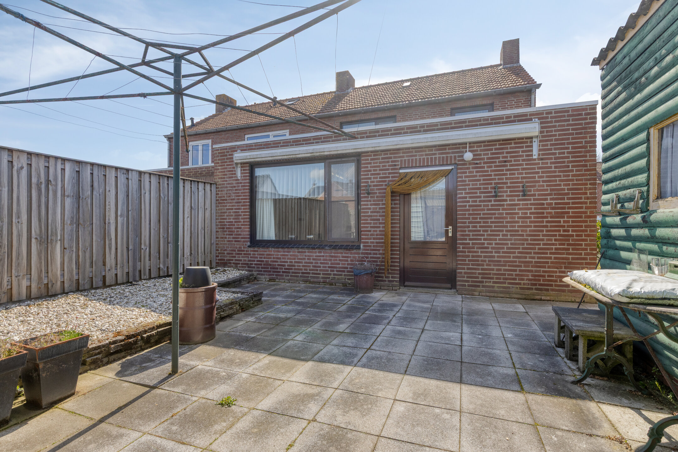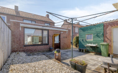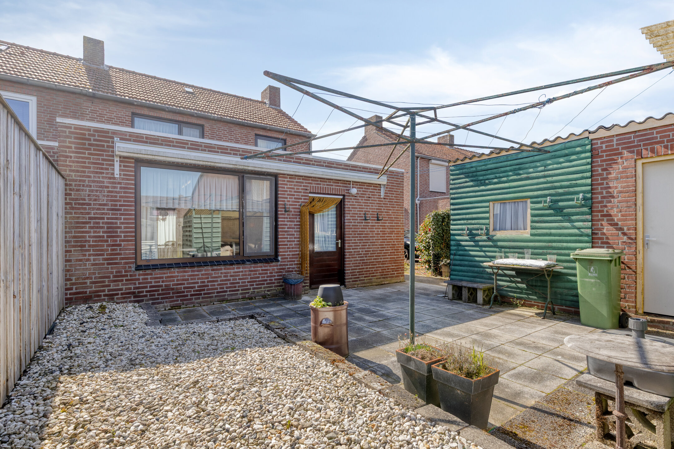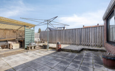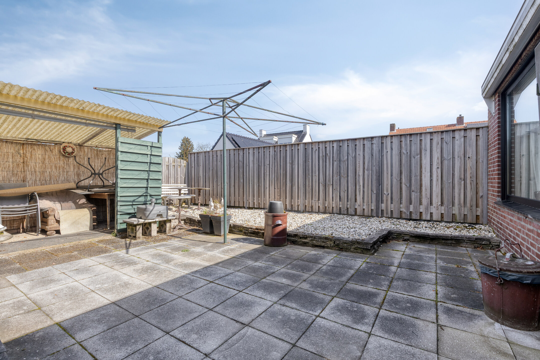 De woning beschikt over een onderhoudsvriendelijke, betegelde tuin. Daarnaast is er een stenen schuur aanwezig, ideaal voor extra bergruimte of het stallen van fietsen en tuingereedschap.