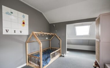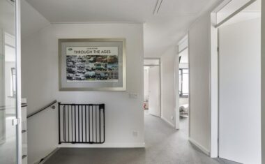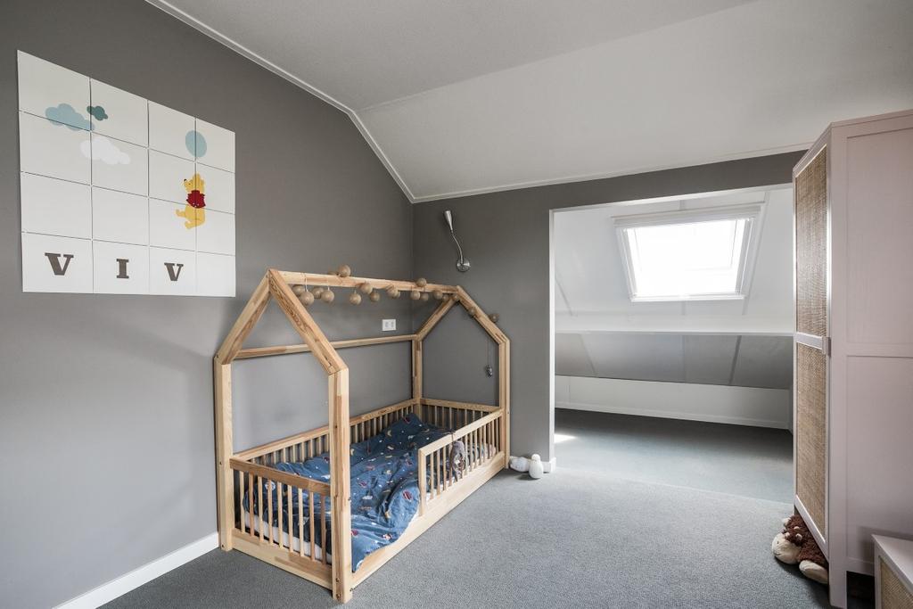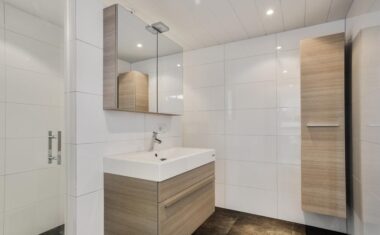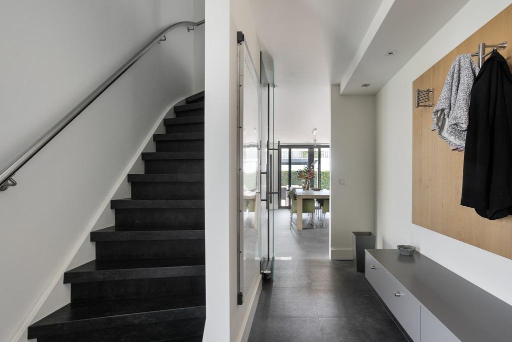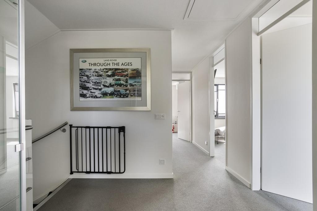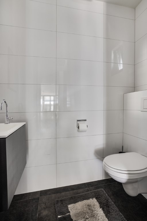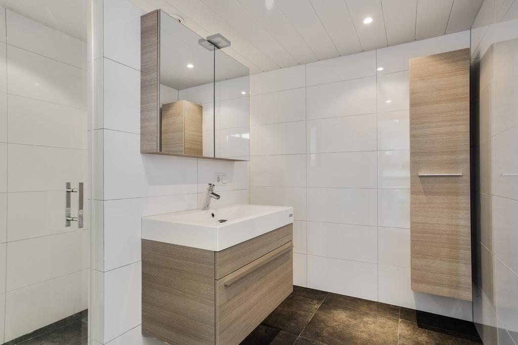 De trap in de hal leidt je naar de 1e verdieping, waar je vier slaapkamers en de badkamer vindt. De badkamer op deze verdieping is modern en volledig uitgerust. Je vindt hier een ligbad, een inloopdouche, een wastafel met spiegel, een zwevend toilet en een handdoekradiator.