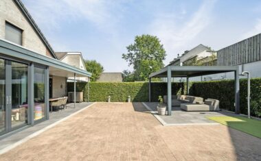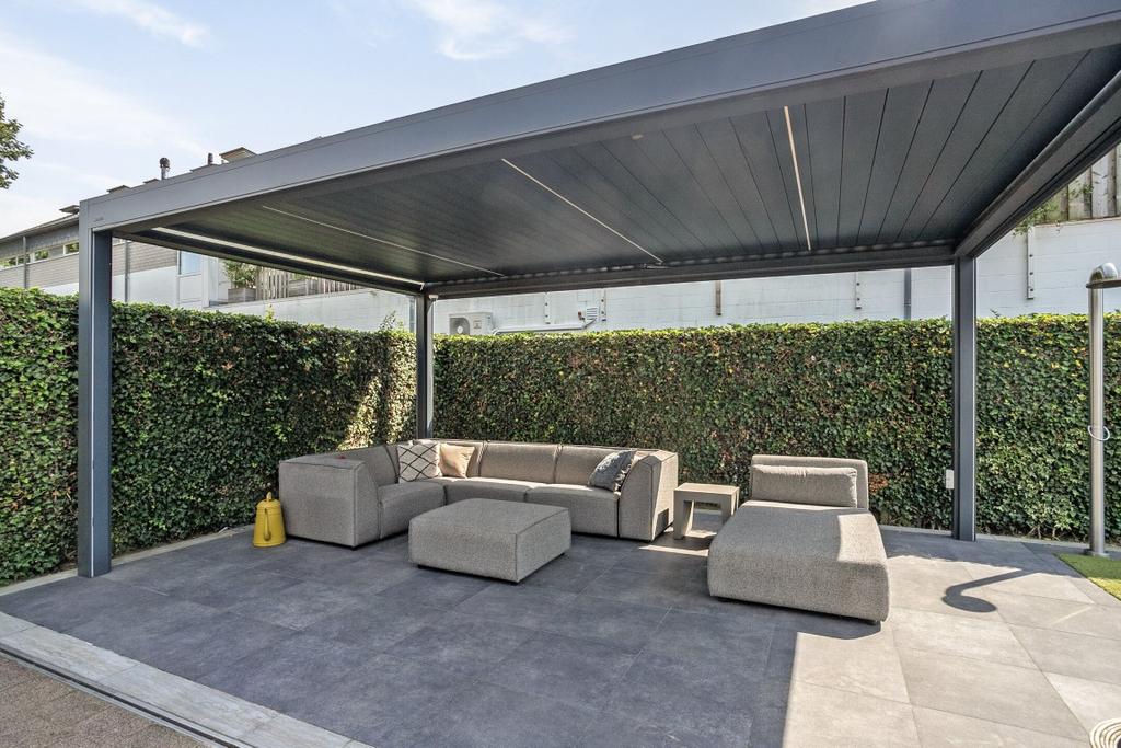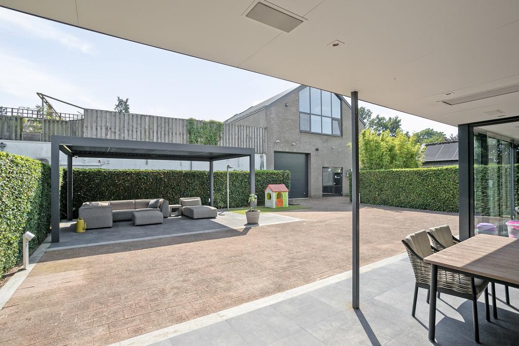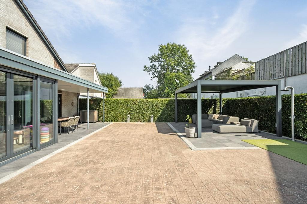 Dankzij de zonnige ligging kun je hier volop genieten van de zonuren, terwijl de overkapping een beschutte plek biedt op warmere dagen. Het terras is ruim genoeg voor een loungebank of een grote tuintafel, waardoor dit de perfecte plek is voor een barbecue of een ontspannen middag in de buitenlucht. De tuin is onderhoudsarm en biedt volop privacy, zodat je hier in alle rust kunt ontspannen. Via de poort aan de zijkant heb je een handige achterom.