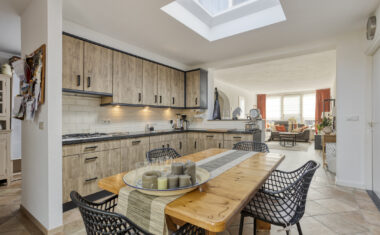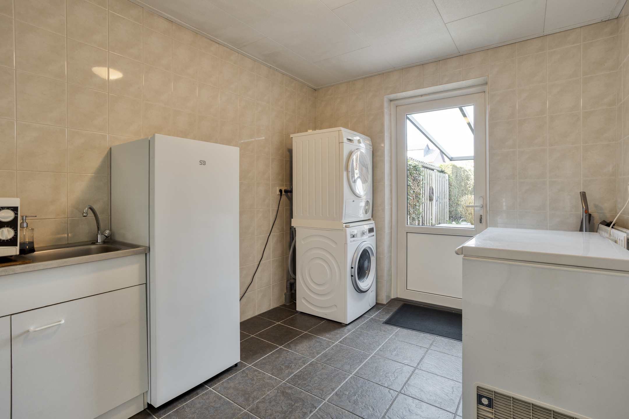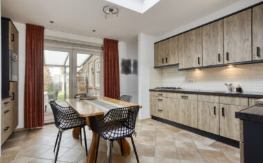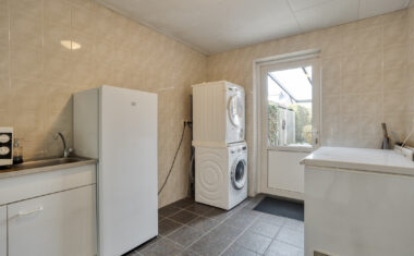 Aansluitend bevindt zich de bijkeuken, ideaal voor extra opslag, witgoed en dagelijkse boodschappen.