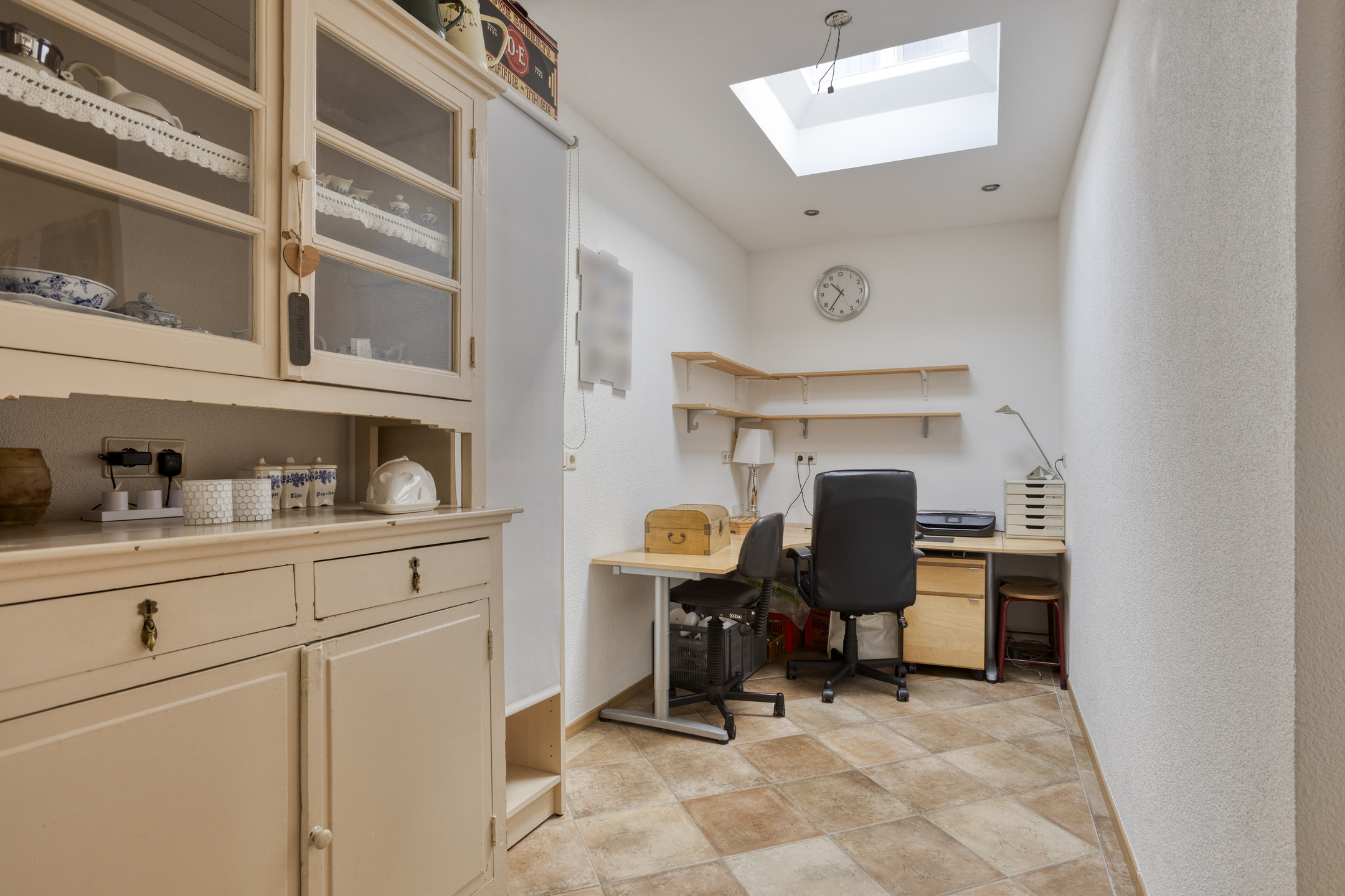 De begane grond biedt bovendien een extra kamer die zich perfect leent als slaapkamer, speelkamer, werk- of hobbyruimte. Daarnaast is er een aparte kantoorruimte aanwezig, waar zich ook de aansluitingen bevinden voor het eventueel realiseren van een badkamer.