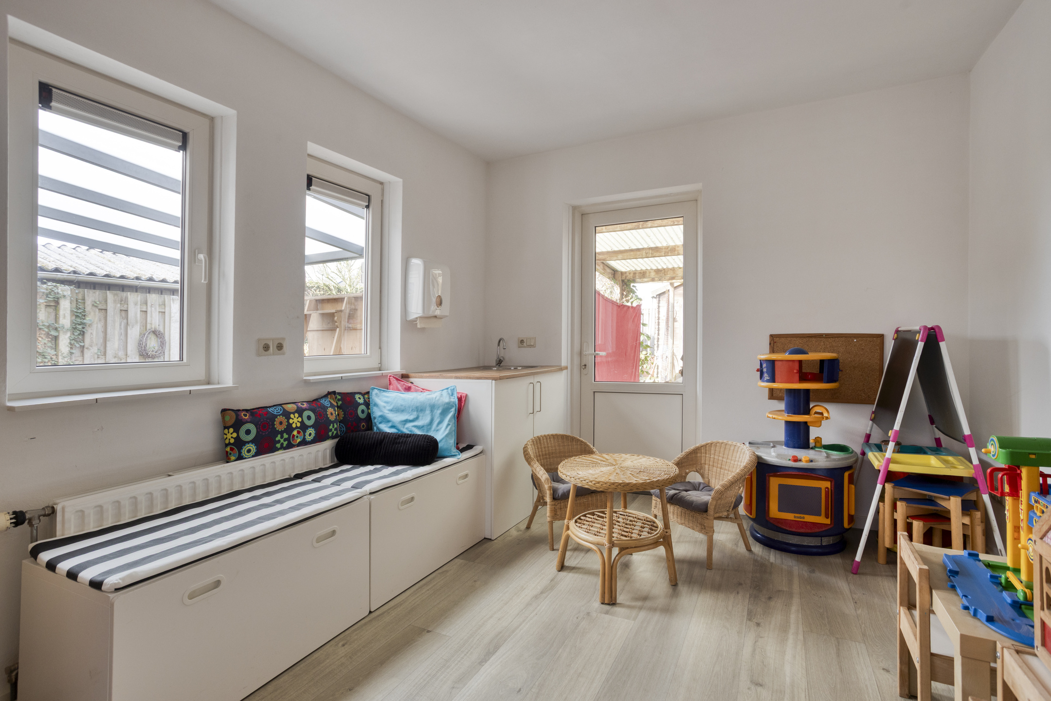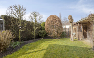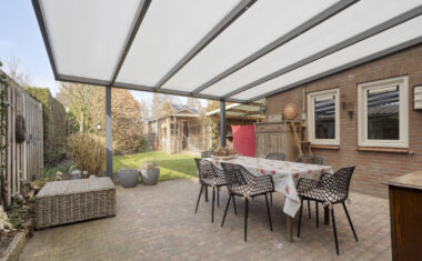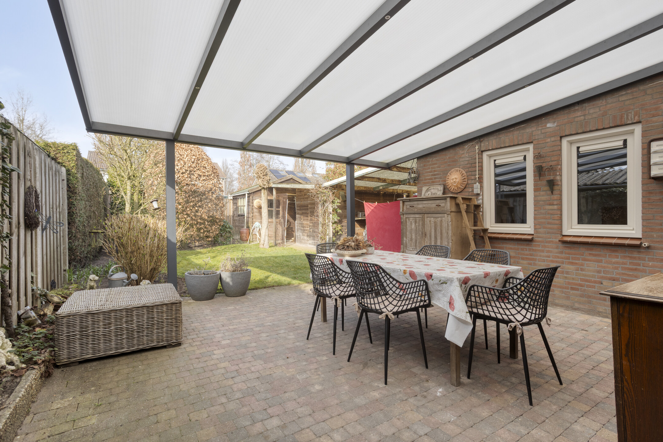 De woning beschikt over een ruime achtertuin met overkapping en terras. Hier kun je heerlijk buiten zitten en genieten van rust en privacy. De tuin biedt voldoende ruimte voor een lounge-set, speeltoestellen of een moestuin. Dankzij de garage en bergingen is er altijd plek voor fietsen, tuingereedschap en hobbyspullen.