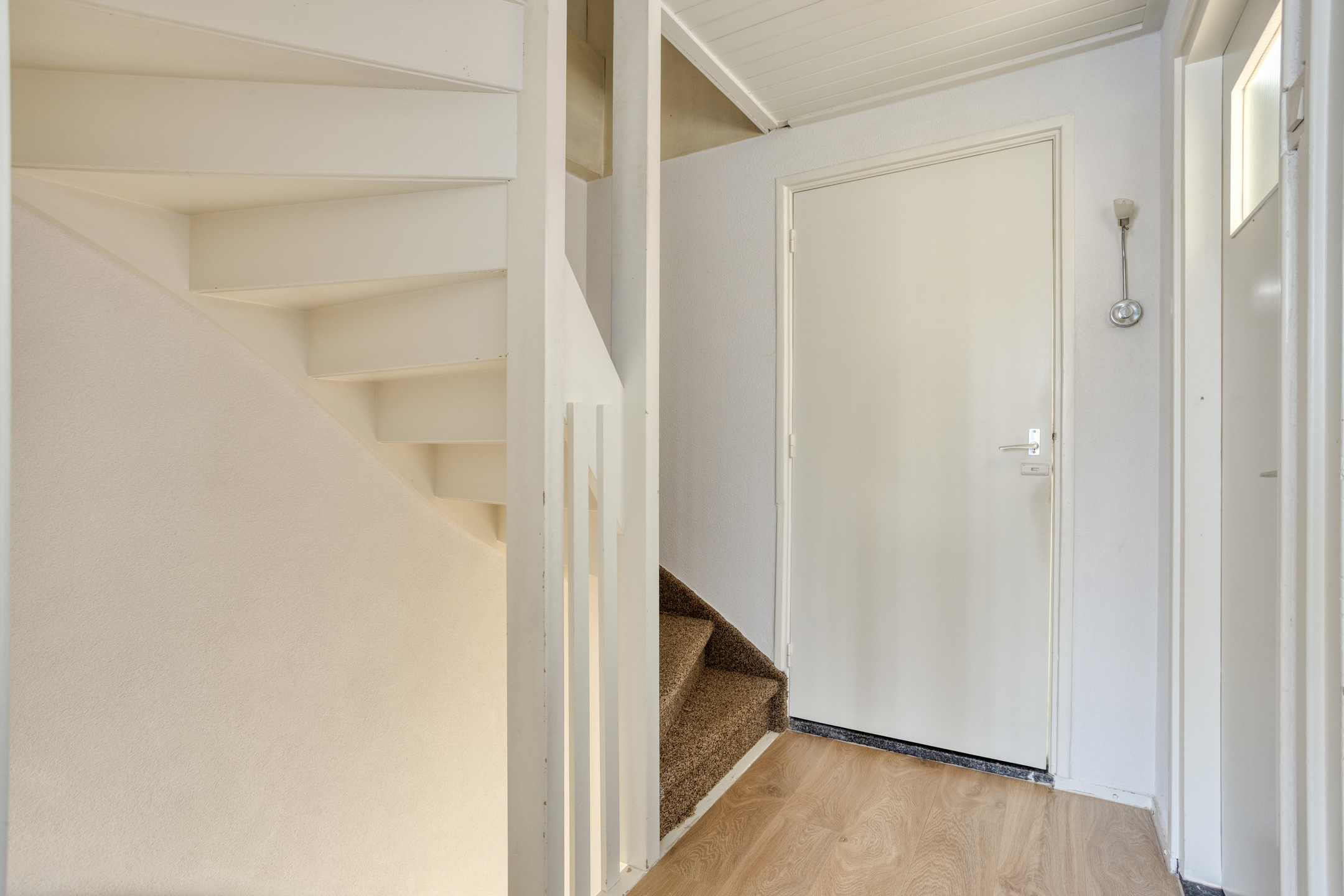 Via de overloop zijn alle slaapkamers en badkamer bereikbaar, evenals de vaste trap naar de tweede verdieping.