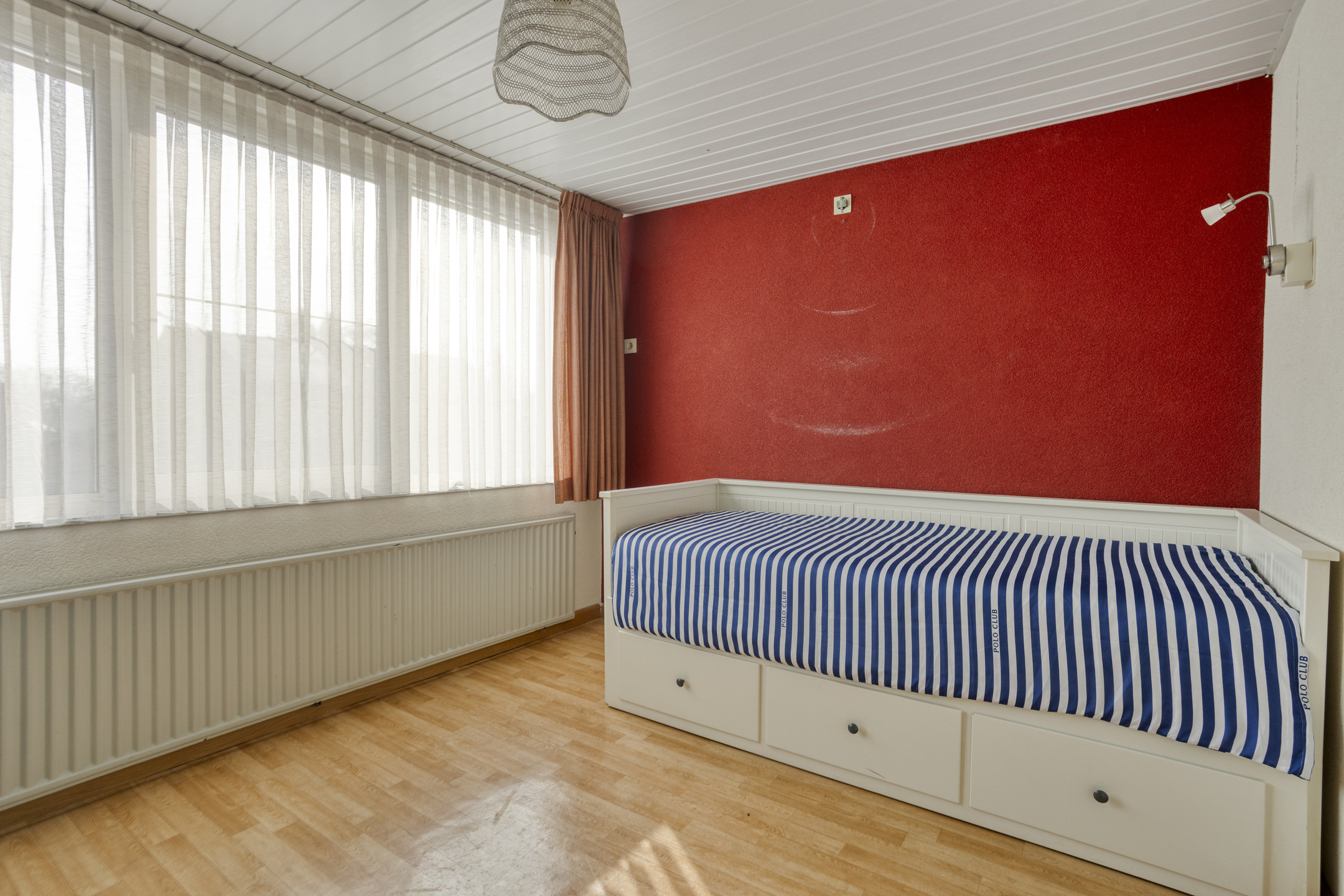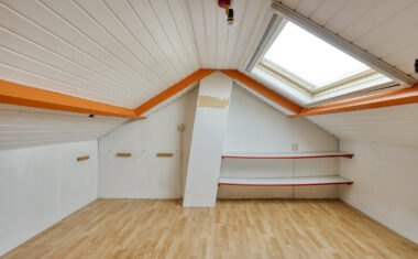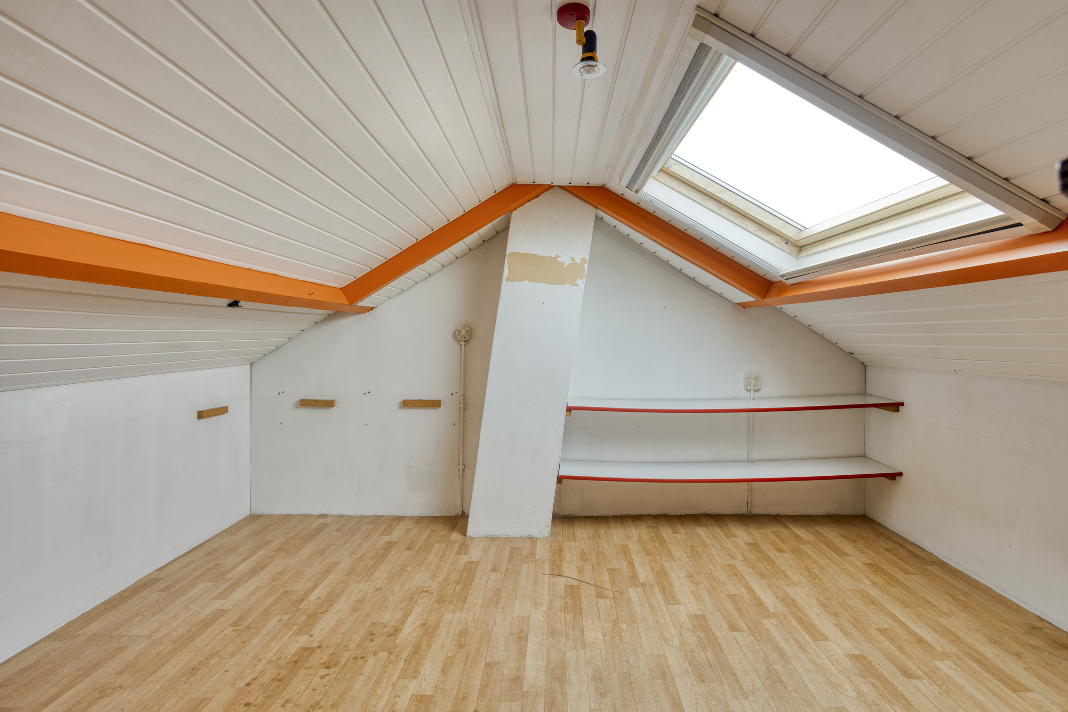 Via een vaste trap bereik je de tweede verdieping. Hier bevindt zich een royale zolderkamer met dakraam en knieschotten, wat zorgt voor extra ruimte en bergruimte. Deze verdieping is flexibel in te delen als extra slaapkamer, werkruimte, hobbyruimte of logeerkamer.