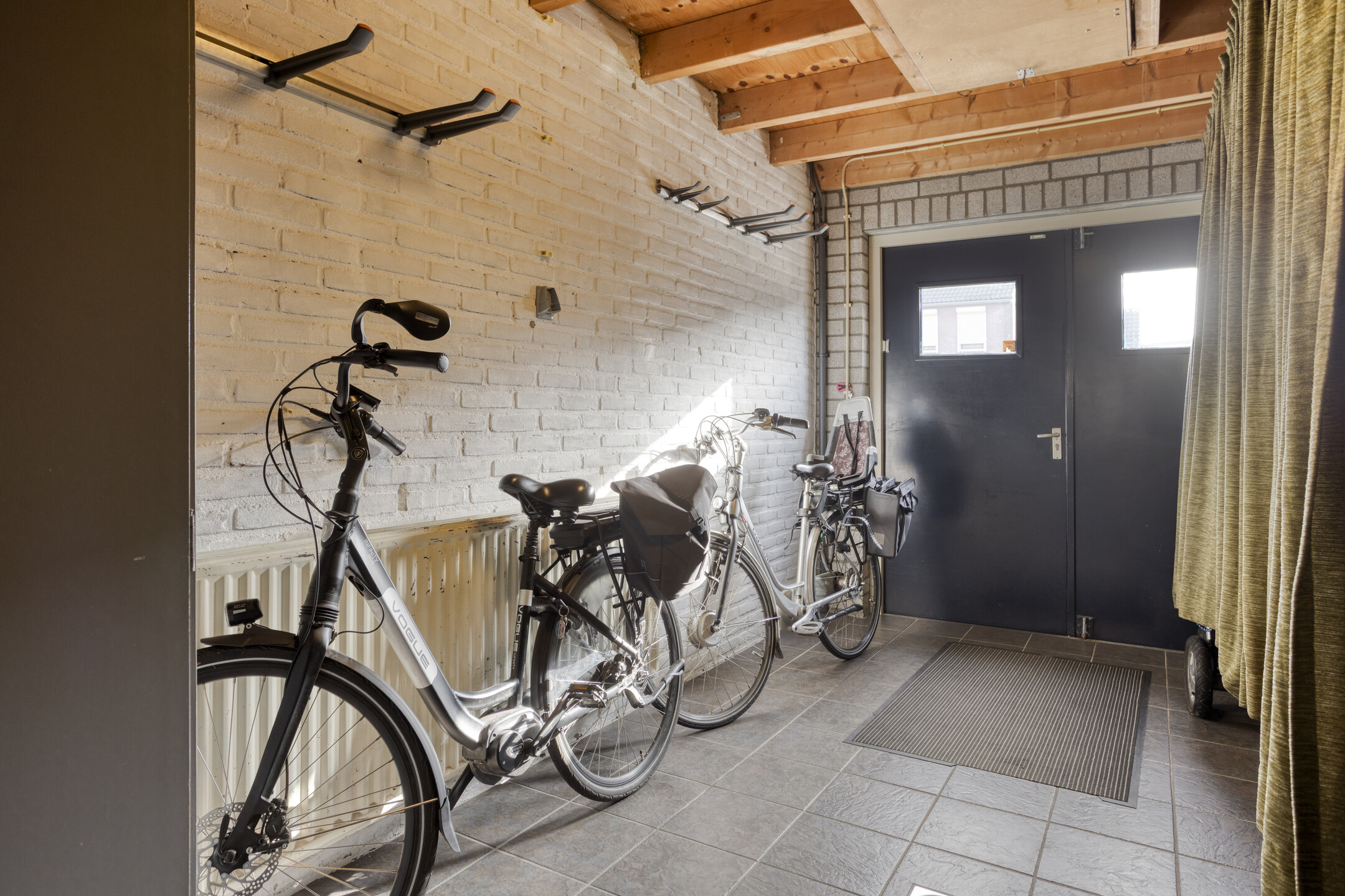De garage kan gebruikt worden voor het stallen van een auto of fietsen en is voorzien van een ruime bergzolder.