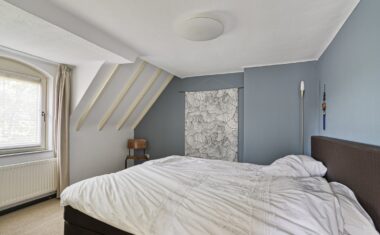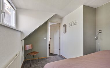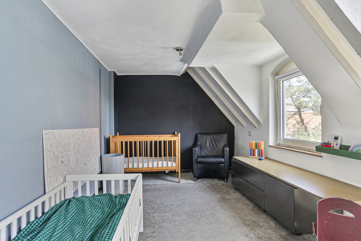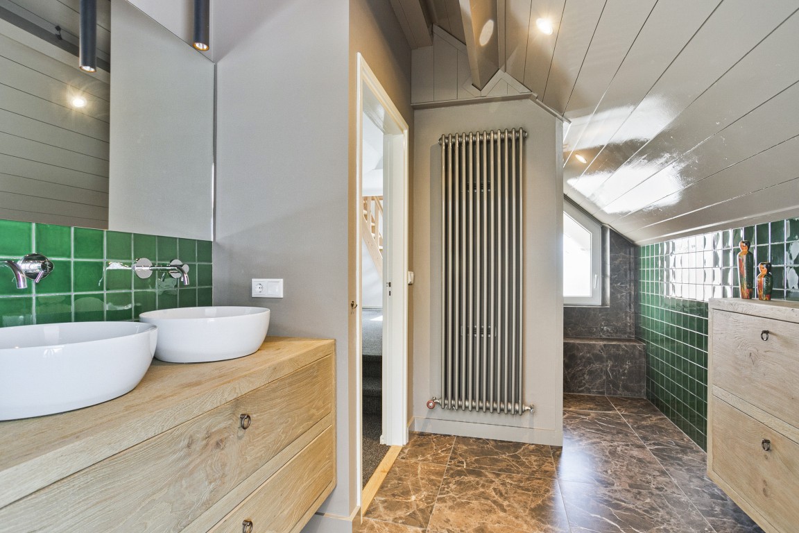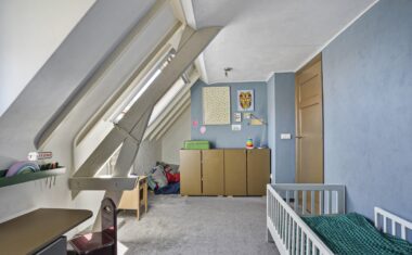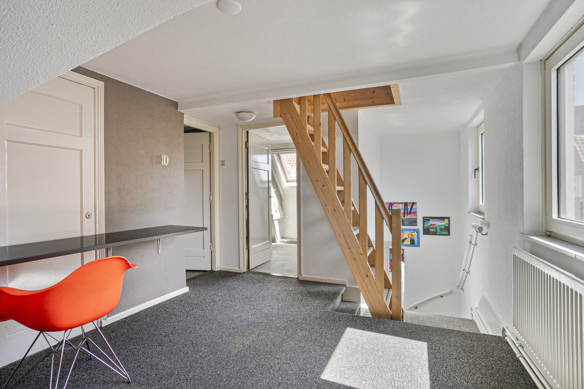 Ruime overloop – 4 slaapkamers, waarvan 1 achter de badkamer is gelegen (met dakkapel) – moderne badkamer, in 2011 vernieuwd, met inloopdouche, sunshower, wastafelmeubel met 2 wastafels en 2e toilet – vaste trap naar…