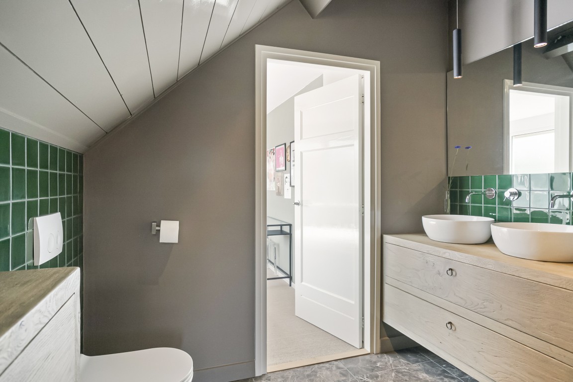- Badkamer voorzieningen Toilet, dubbele wastafel, inloopdouche