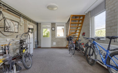 Begane grond: Entree/hal met garderobe, meterkast en toilet. Ruime woonkamer met veel lichtinval en door de schuifpui een mooi zicht op de tuin. Hier is ruimte genoeg voor een royale zithoek én een gezellige eethoek. De moderne woonkeuken (2019) is voorzien van diverse luxe inbouwapparatuur waaronder vaatwasser, koelkast, combi-oven/magnetron, afzuigkap en inductiekookplaat (2023). De ruime slaapkamer biedt directe toegang tot de (deels geüpgradede) badkamer met ligbad, inloopdouche en wastafelmeubel. Daarnaast is er een praktische bijkeuken met witgoedaansluiting en een doorgang naar de garage met vaste trap naar de zolderkamer die ideaal is als werk-, speel- of hobbyruimte.