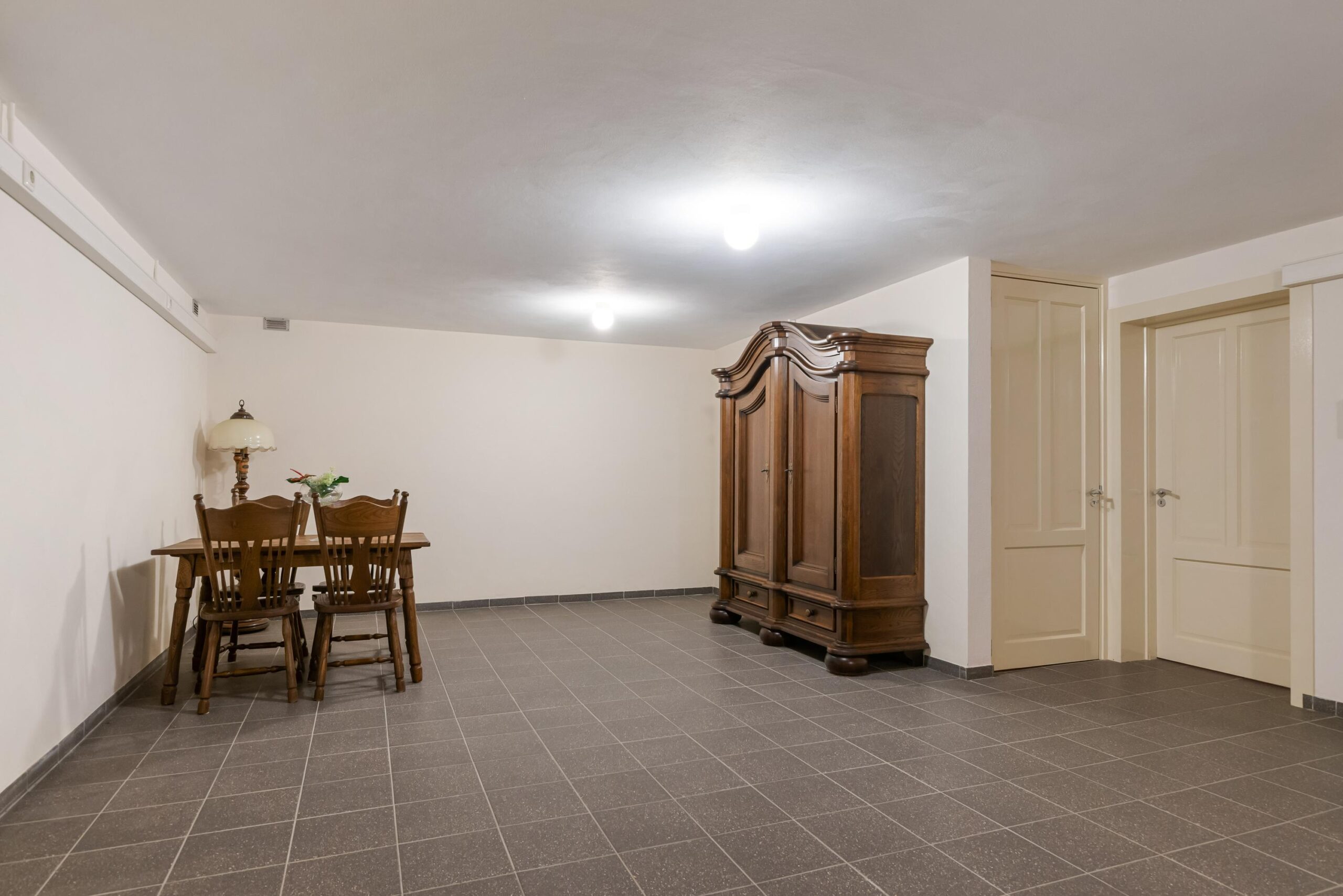 Een van de grote pluspunten van dit huis is de royale kelder. Deze bestaat uit een hal met extra bergruimte én een zeer ruime kelderkamer met meerdere gebruiksmogelijkheden: voorraad, hobby, fitness of zelfs een wijnkelder. De hoogte en oppervlakte maken het een volwaardige extra verdieping.
