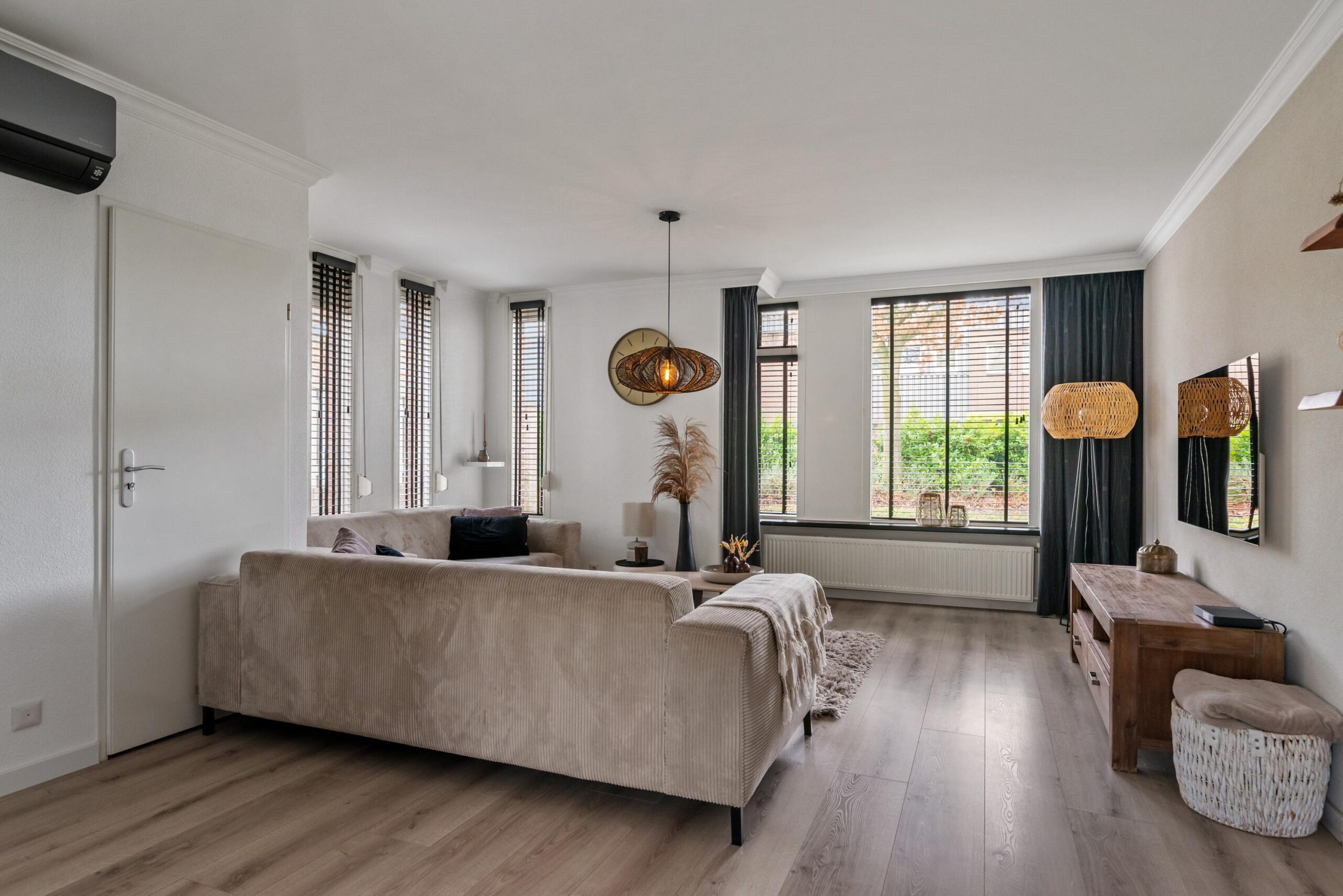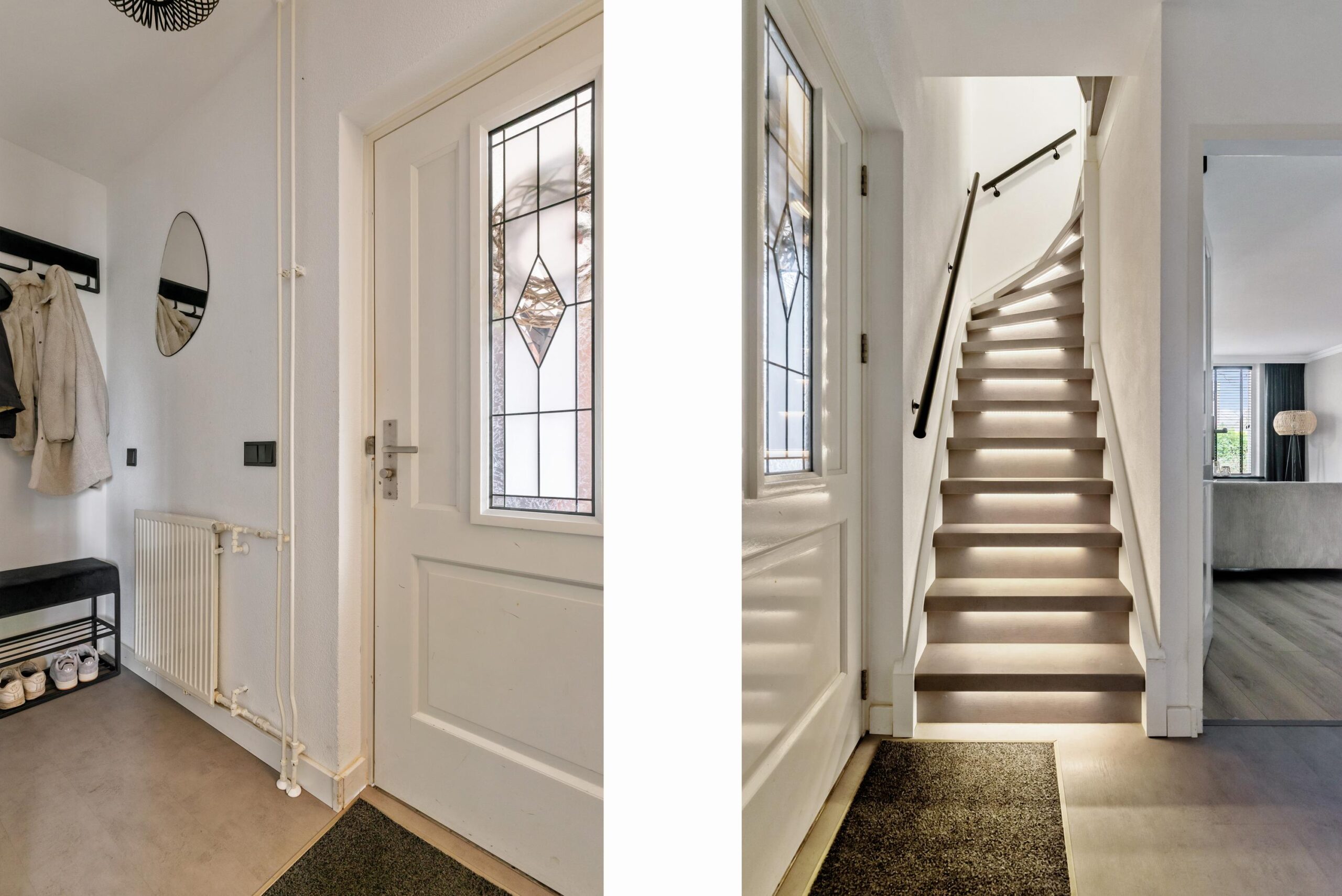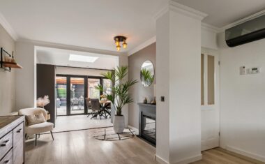 Via de entree stap je binnen in een verzorgde hal, waar het toilet, de meterkast en de trapopgang. Vanuit hier loop je door naar de sfeervolle, lichte woonkamer. Deze strekt zich uit over de volledige diepte van de woning en wordt aan de voorzijde royaal verlicht door grote raampartijen – een heerlijke plek om te ontspannen of gezellig samen te komen.
