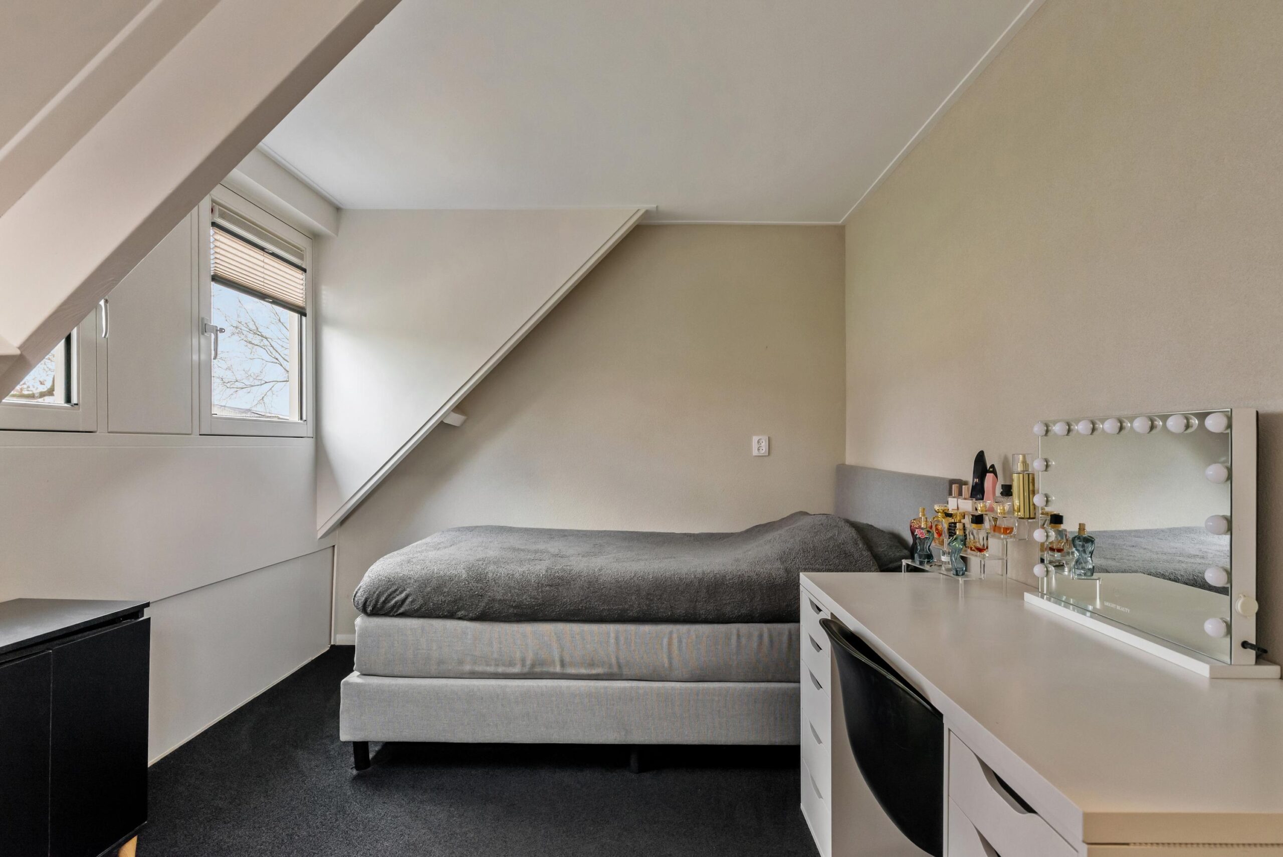 Via een vaste trap bereik je de praktische bergzolder, een fijne plek voor het opbergen van seizoensspullen.