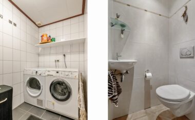 Aansluitend vind je de garage, perfect voor extra opslag, een hobbyruimte of het stallen van fietsen. Daarnaast is er een aparte wasruimte die uitstekend dienstdoet als bijkeuken of plek voor witgoed.