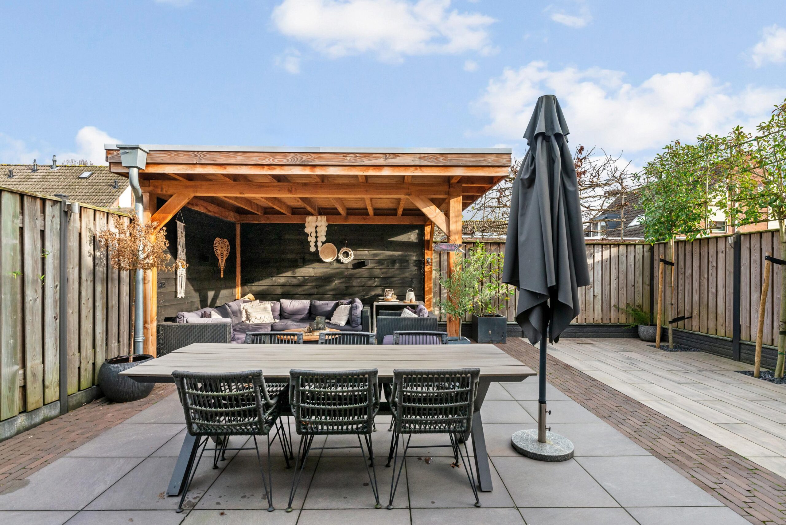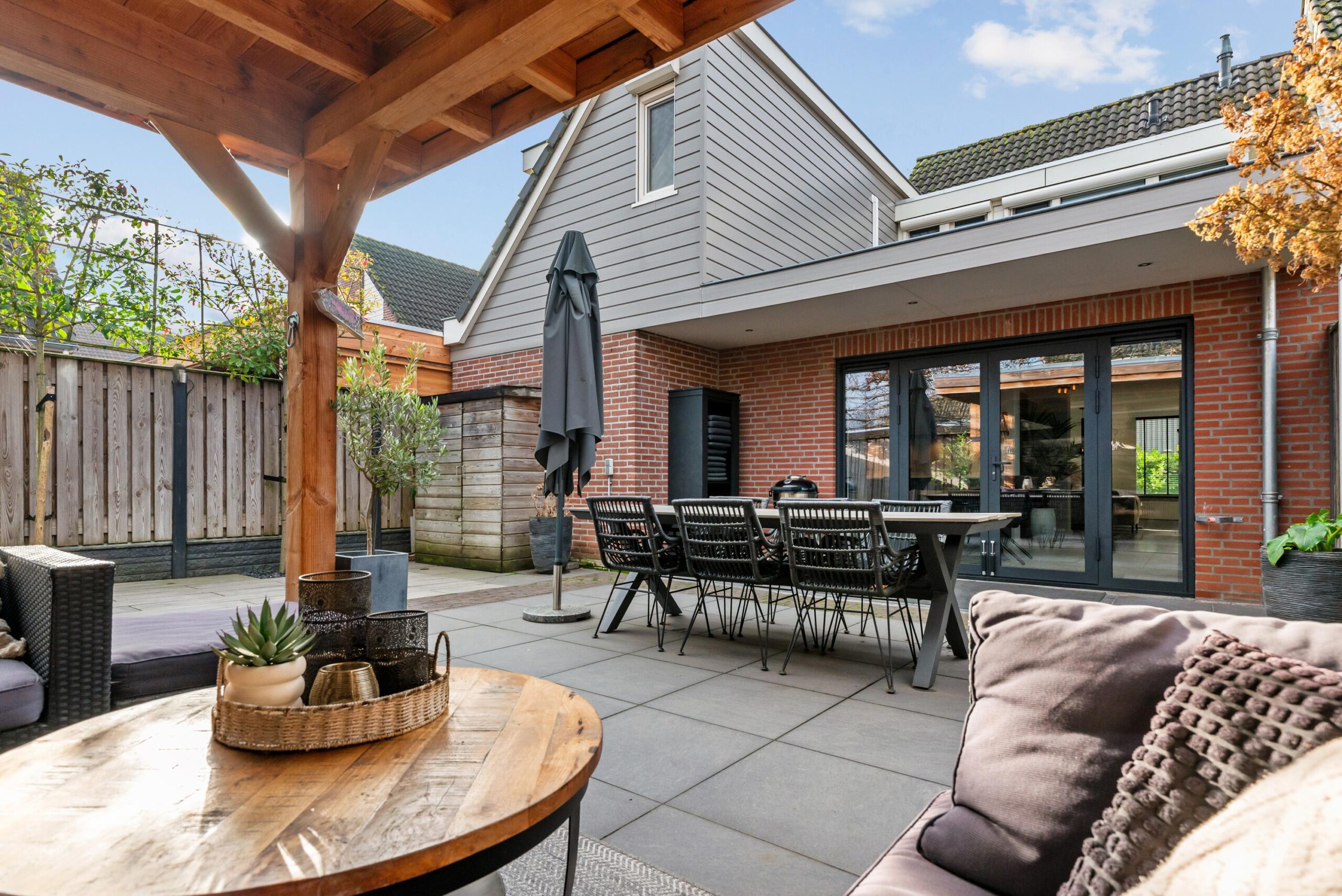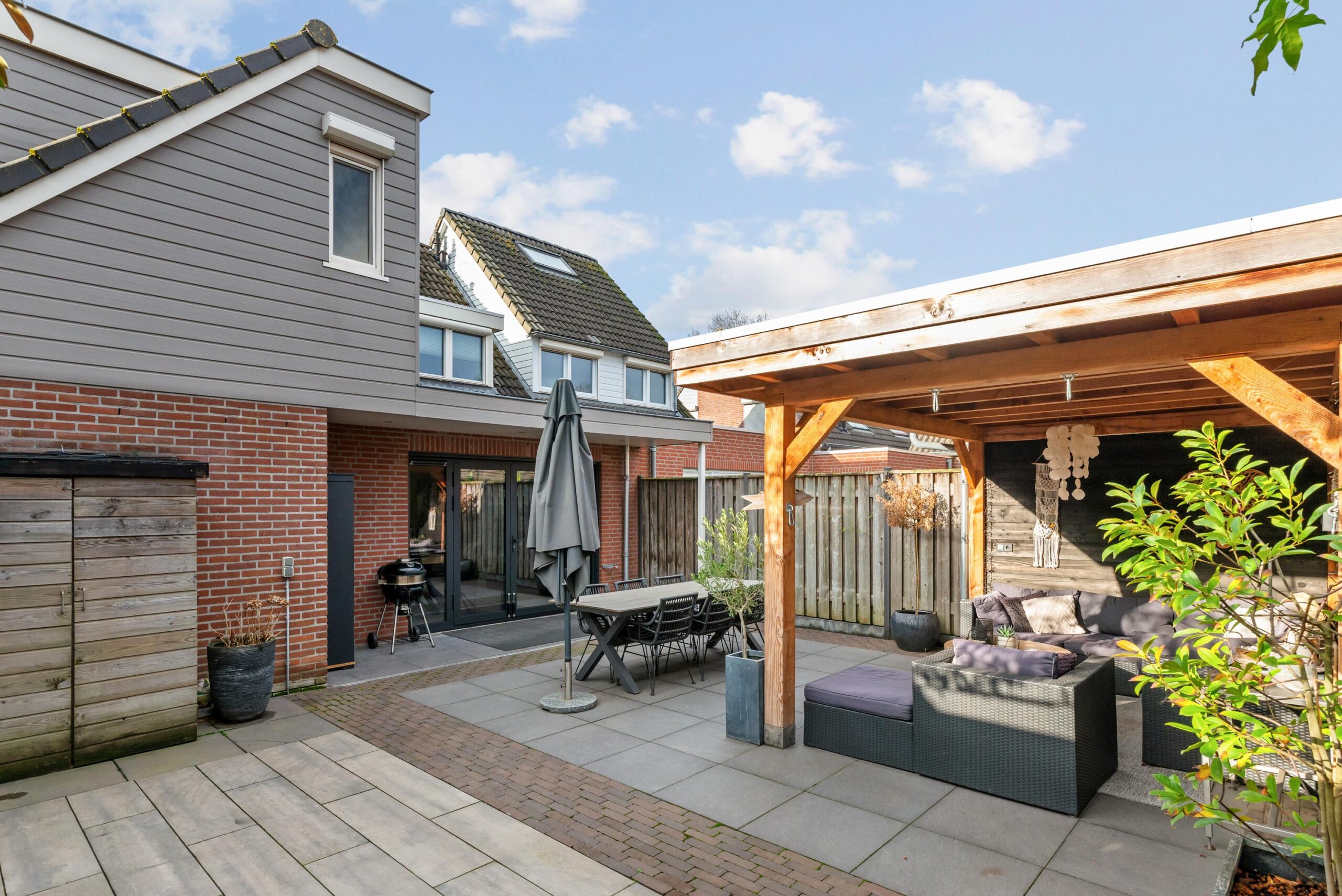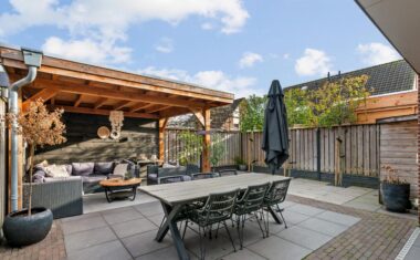 De achtertuin is een fijne, besloten plek met een ruime overkapping, waardoor je hier vrijwel het hele jaar door heerlijk buiten kunt zitten. Aan de voorzijde zorgt de carport voor extra gemak en parkeerruimte op eigen terrein.