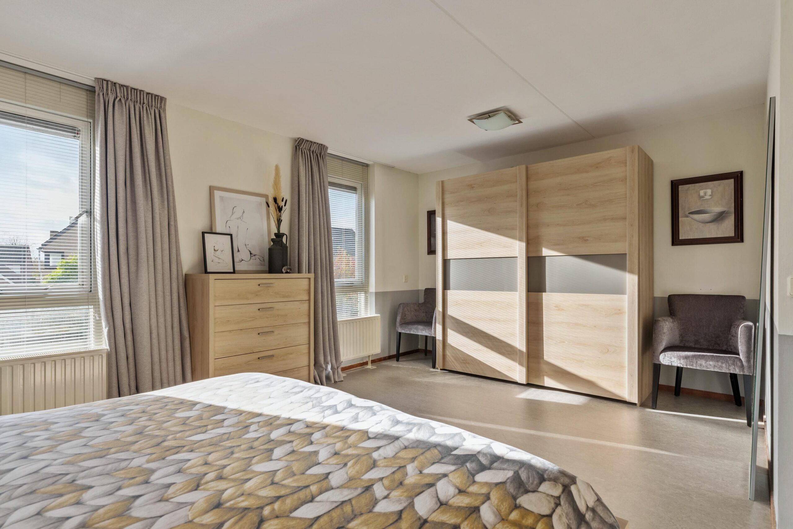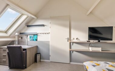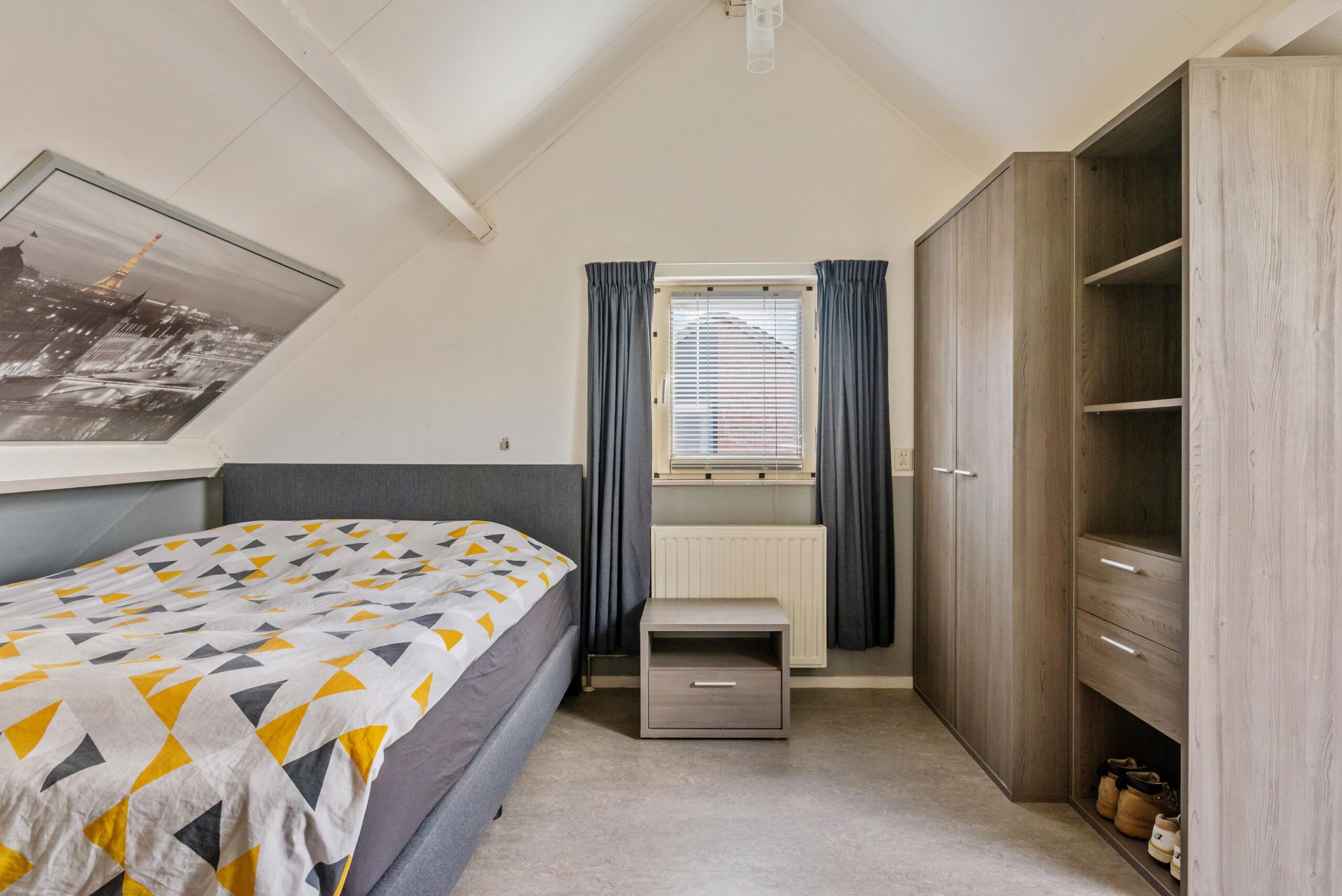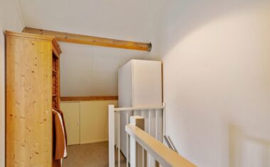 Via een vaste trap bereikbaar. Hier bevindt zich een grote derde slaapkamer met voldoende ruimte voor een tweepersoonsbed, logeerplek of studeerhoek. Aan beide zijden bevinden zich extra opslagruimtes, ideaal voor het opbergen van seizoensspullen.