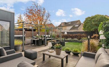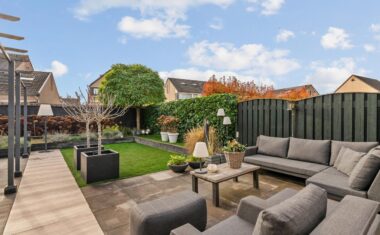 De tuin is verzorgd aangelegd met een combinatie van groen en bestrating. Achter de woning bevindt zich een fijn terras waar je heerlijk kunt genieten van rust en privacy. Dankzij de indeling van de tuin is er altijd wel een plekje in de zon of juist in de schaduw te vinden.