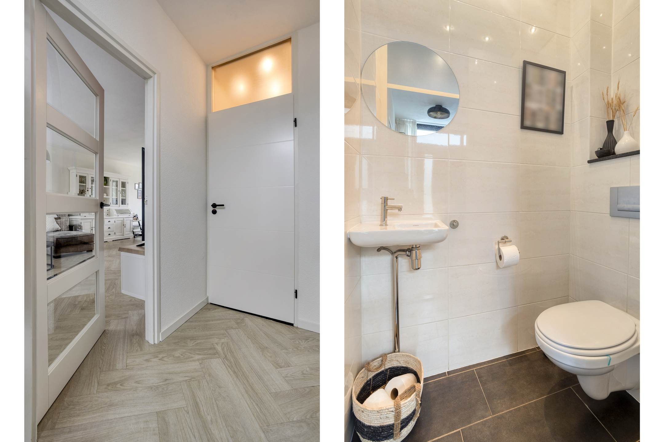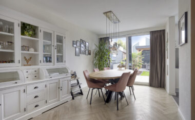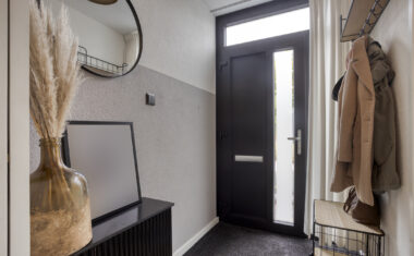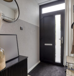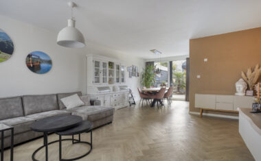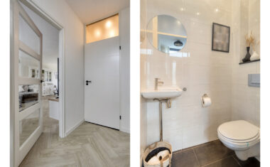 Entree/hal met meterkast en toilet. Vanuit de hal heb je toegang tot de ruime woonkamer, die dankzij de grote raampartijen heerlijk licht is. De open indeling zorgt voor een prettige verbinding tussen het zitgedeelte, de eethoek en de keuken.