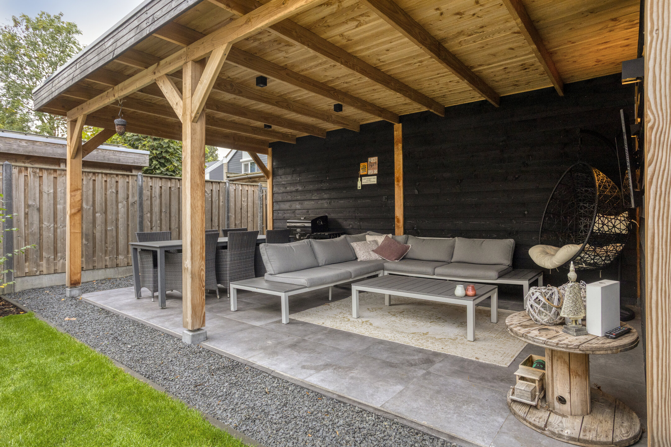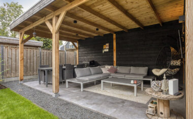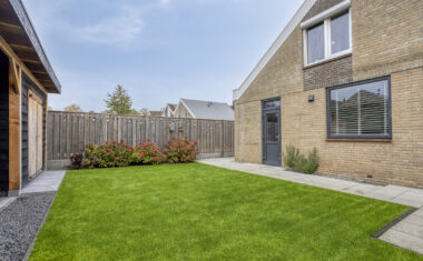 – tuin opnieuw aangelegd met veranda (2024).