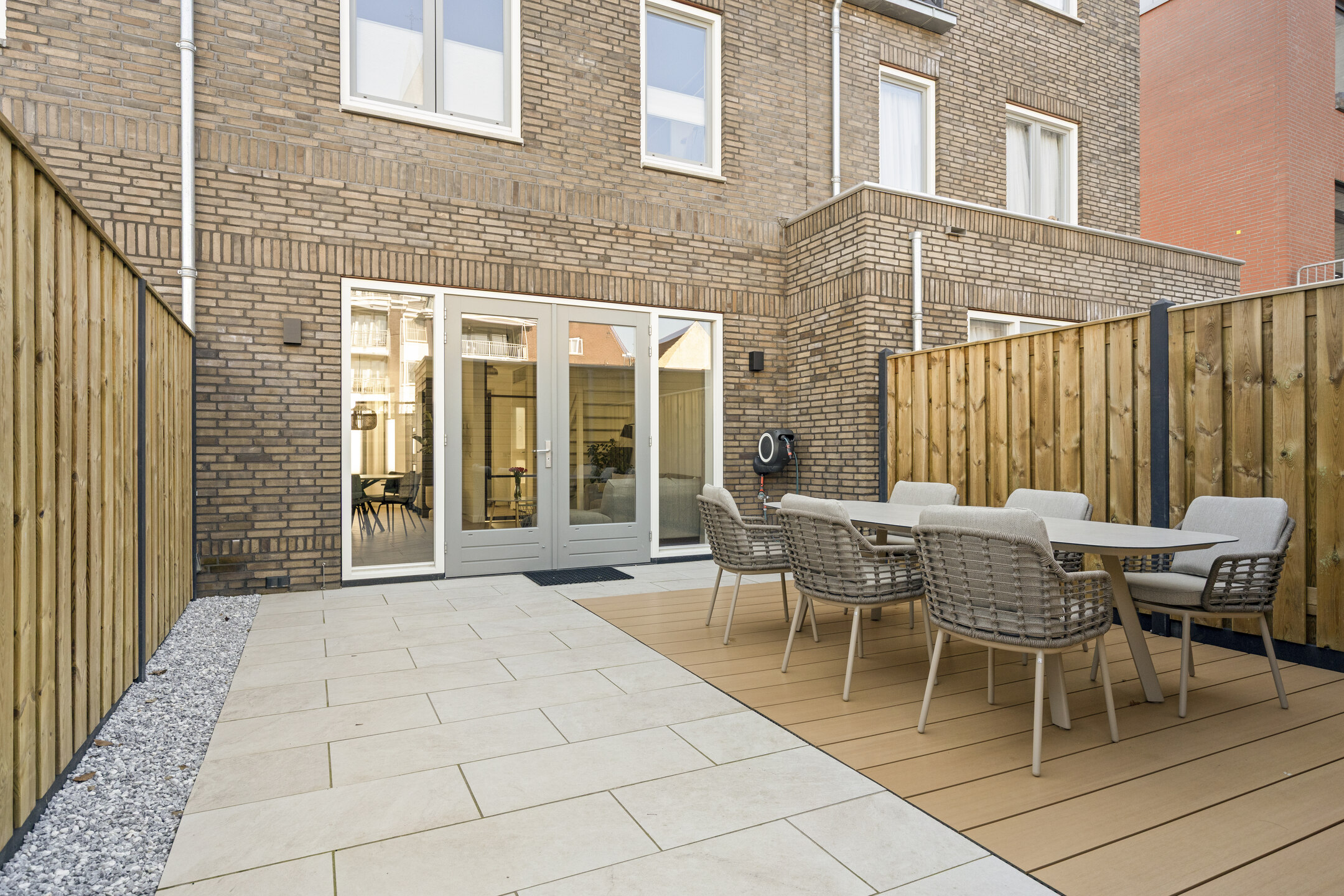 De achtertuin is netjes aangelegd en direct klaar voor gebruik. Er is ruimte voor een comfortabel terras waar je kunt genieten van het buitenleven en waar voldoende plaats is voor een loungeset of eettafel. De tuin is verzorgd ingericht, waardoor er een prettige balans ontstaat tussen onderhoudsgemak en sfeer.
