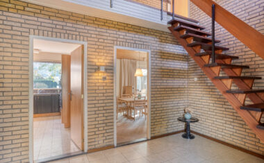 Bij binnenkomst word je ontvangen in een royale hal met vide, die direct een gevoel van licht en ruimte geeft. Vanuit de hal zijn het toilet, de garderobe, meterkast en trapopgang bereikbaar. De royale woonkamer is een heerlijke plek om te vertoeven: dankzij de grote ramen valt er veel natuurlijk licht naar binnen en de haard zorgt voor een warme en gezellige sfeer in de wintermaanden.