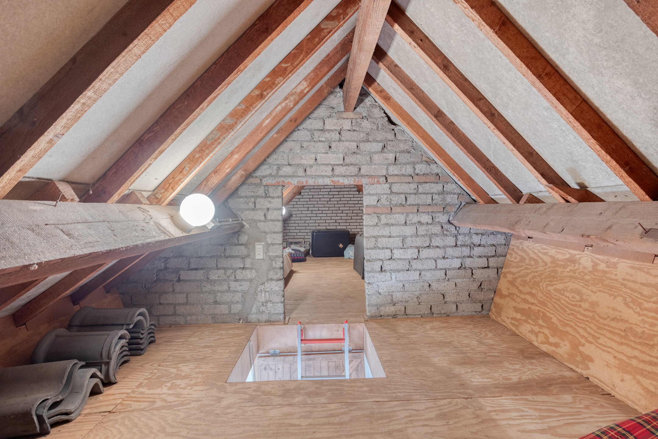 Via een vlizotrap bereik je de bergzolder. Deze verdieping biedt volop bergruimte en de mogelijkheid om spullen netjes uit het zicht op te bergen.