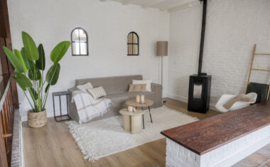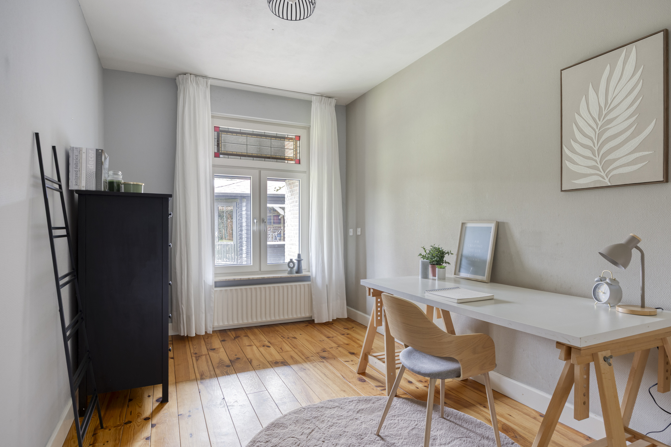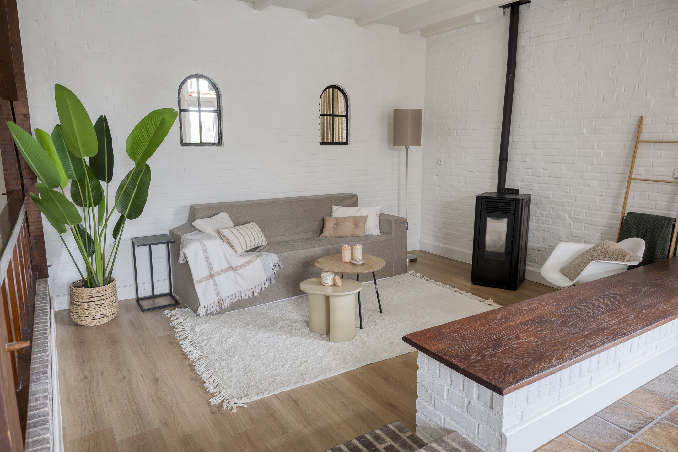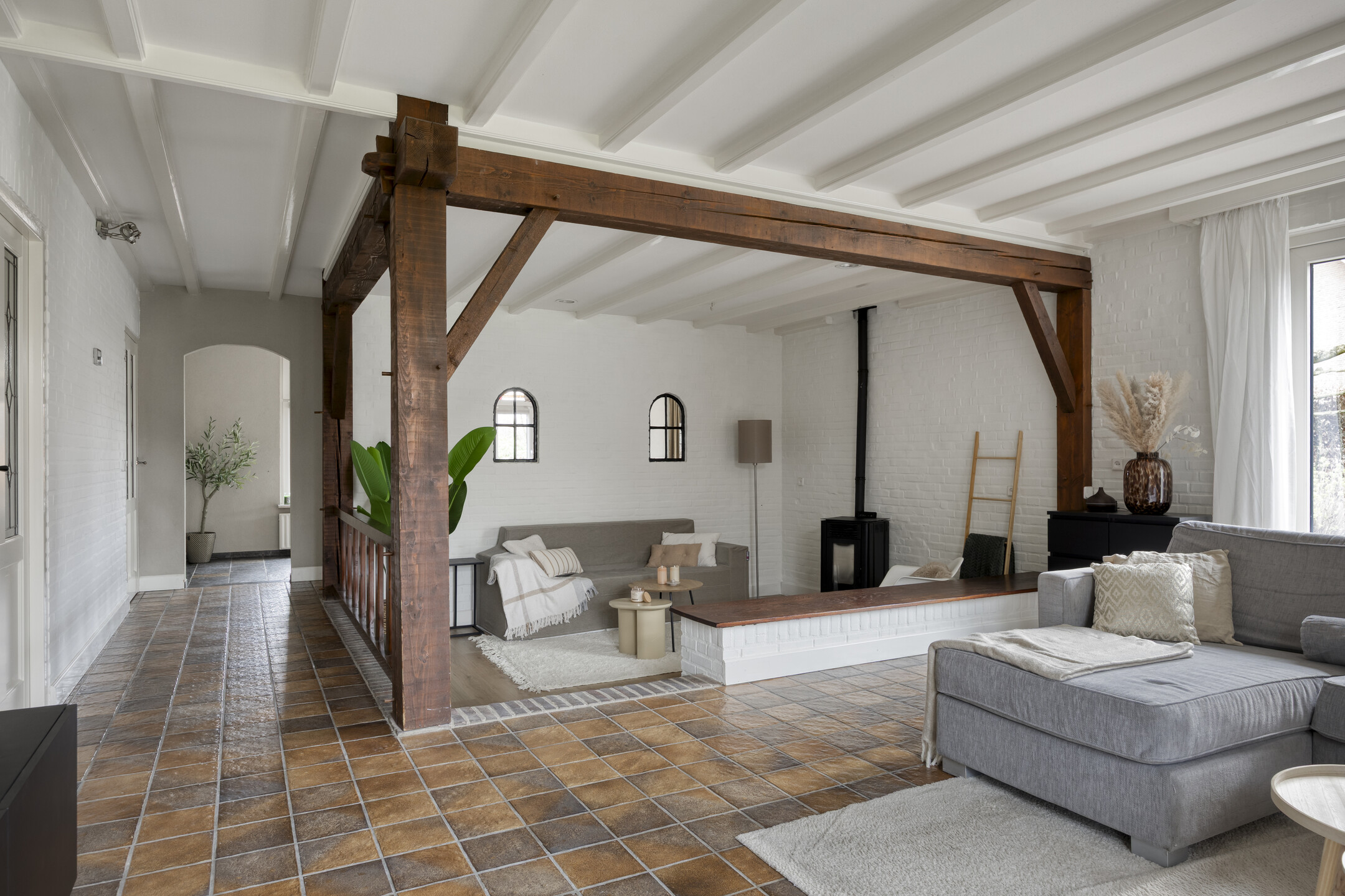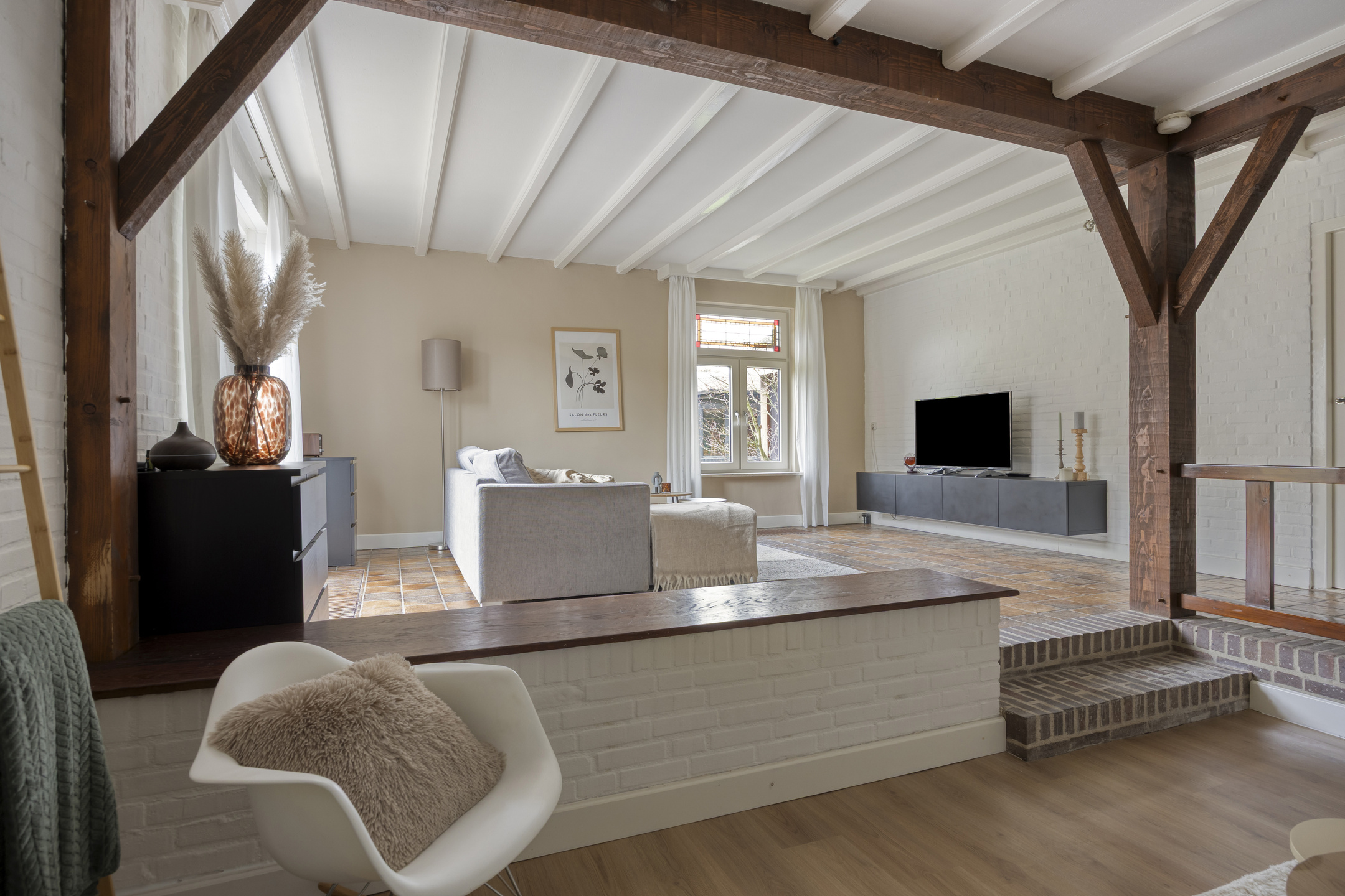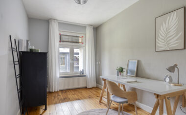 – woonkamer, keuken en werkkamer/kantoor met vloerverwarming.